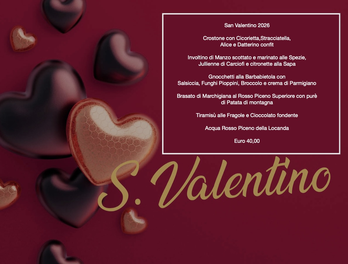 Prezzo speciale San Valentino: menù dedicato a 40 € a persona, che include antipasto, primo, secondo, dessert Acquq e Vino. Proponiamo un menù fisso romantico pensato per le coppie, con alcune varianti a scelta per chi ha esigenze particolari (vegetariane o intolleranze, da segnalare in fase di prenotazione).