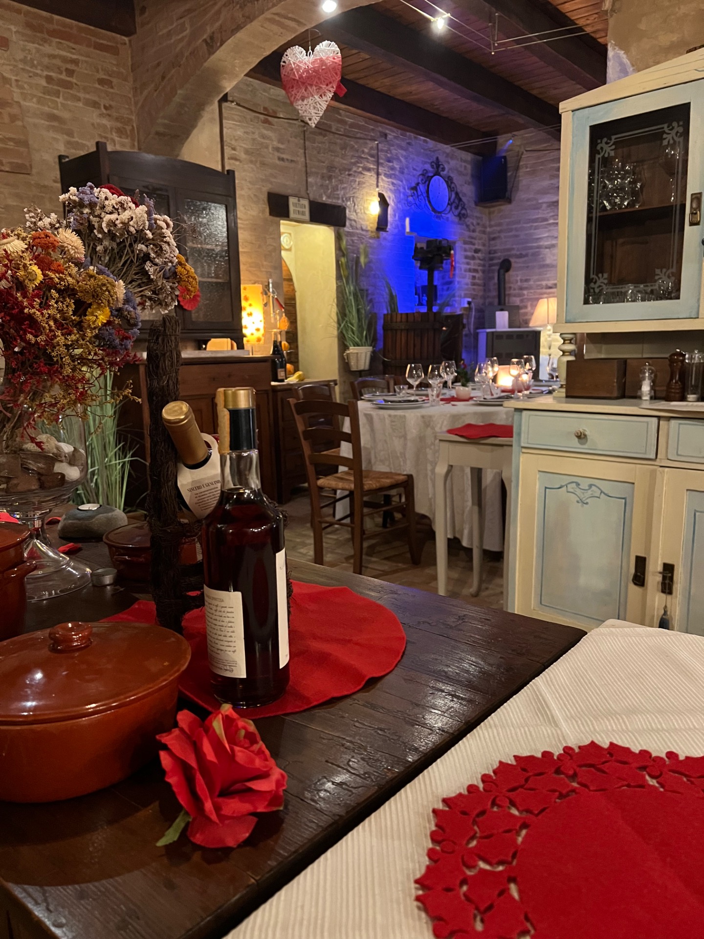 Alcuni dettagli visivi a tema cuore, calice di vino e fiore renderanno l’atmosfera ancora più romantica e rassicurante, invitandovi a vivere una serata speciale in totale serenità.